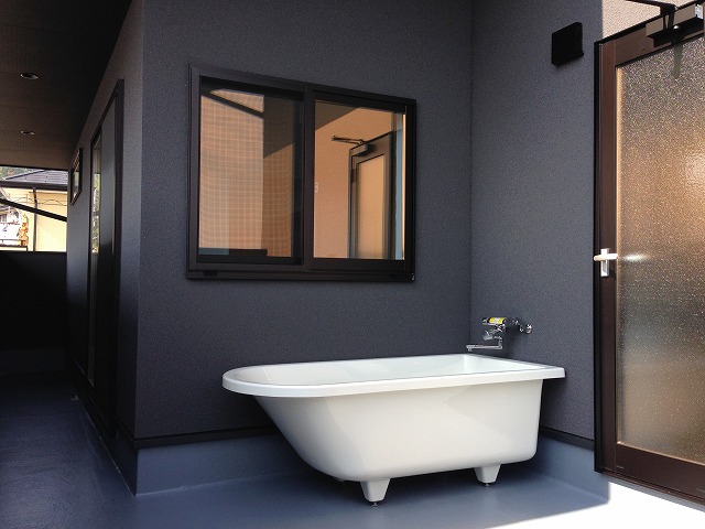 薪ストーブと露天風呂のある家