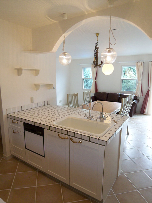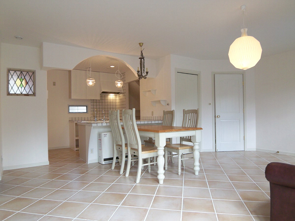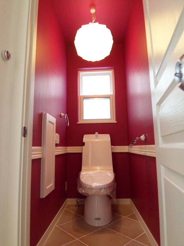 赤いアンティークの木製玄関ドアに施主様のこだわりを感じる、ラ・プロヴァンス。