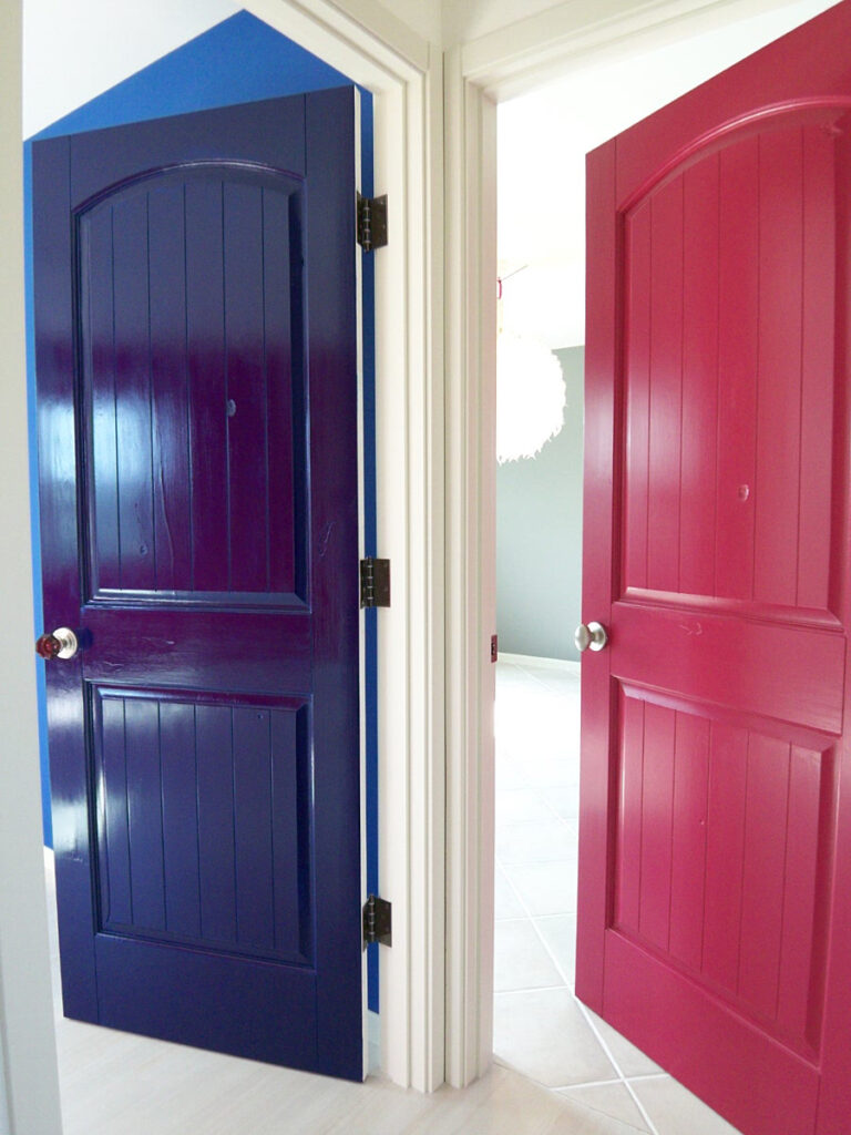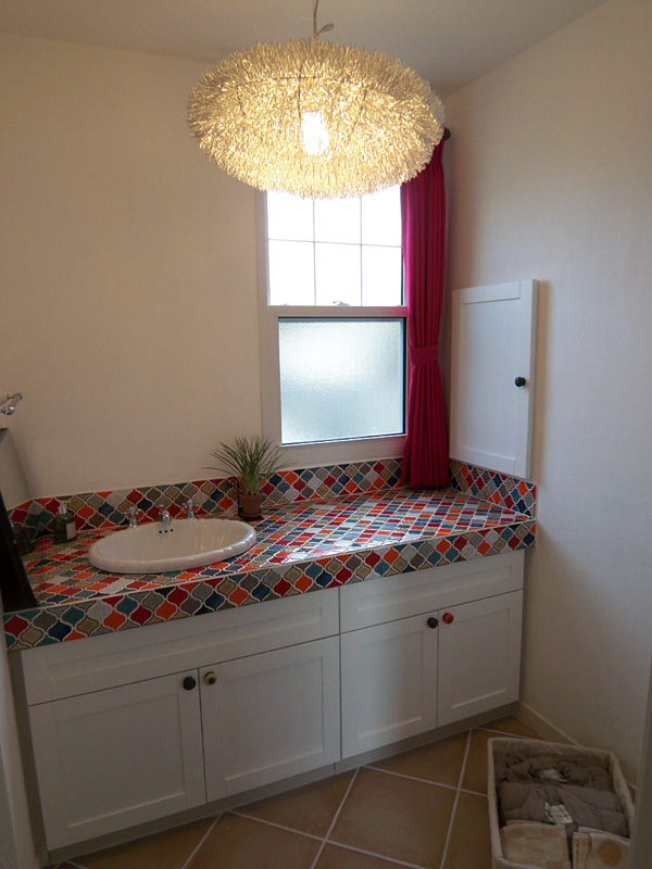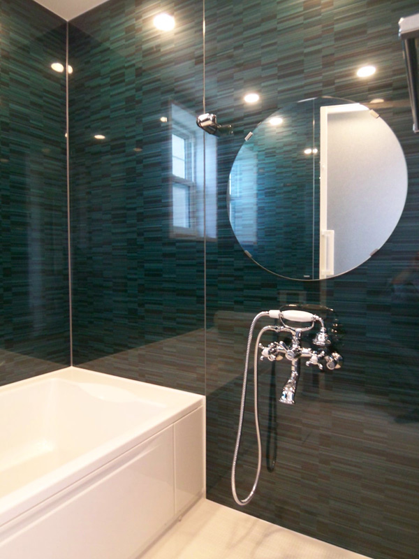 寝室の壁はご自分で塗装。ユニットバスはテレフォンシャワーを特注で設置しました。