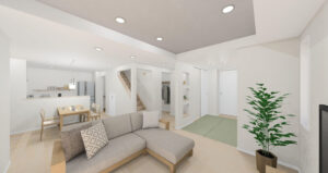 ・リビングから続くタタミコーナーでより広がりを感じる開放的なプランニング