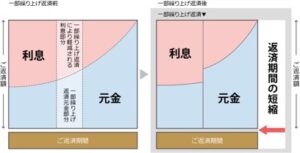 一般的には繰り上げ返済を行うごとに、毎月の返済金額は同じでも返済期間がどんどん短くなっていくため、利息軽減効果は非常に高い方法です。