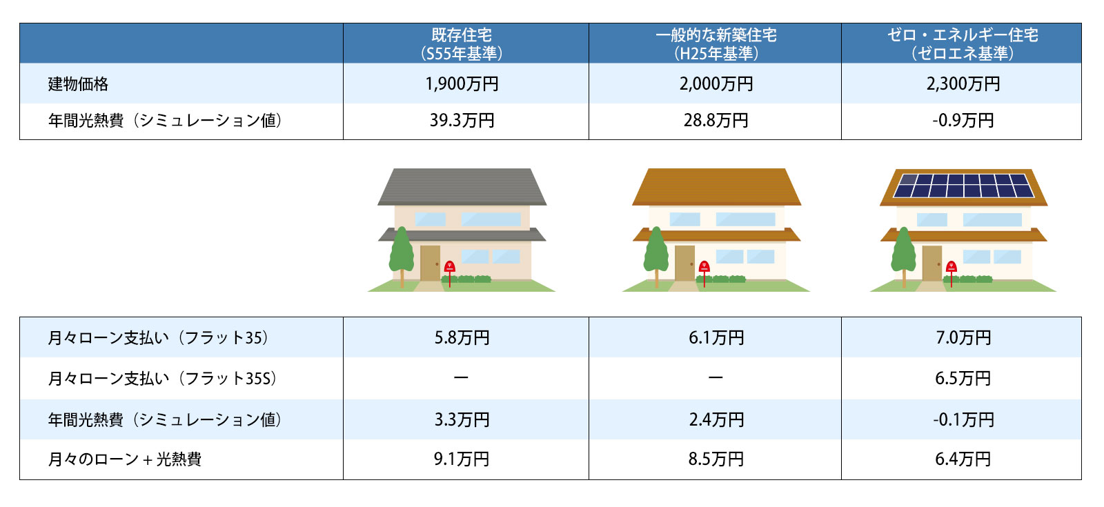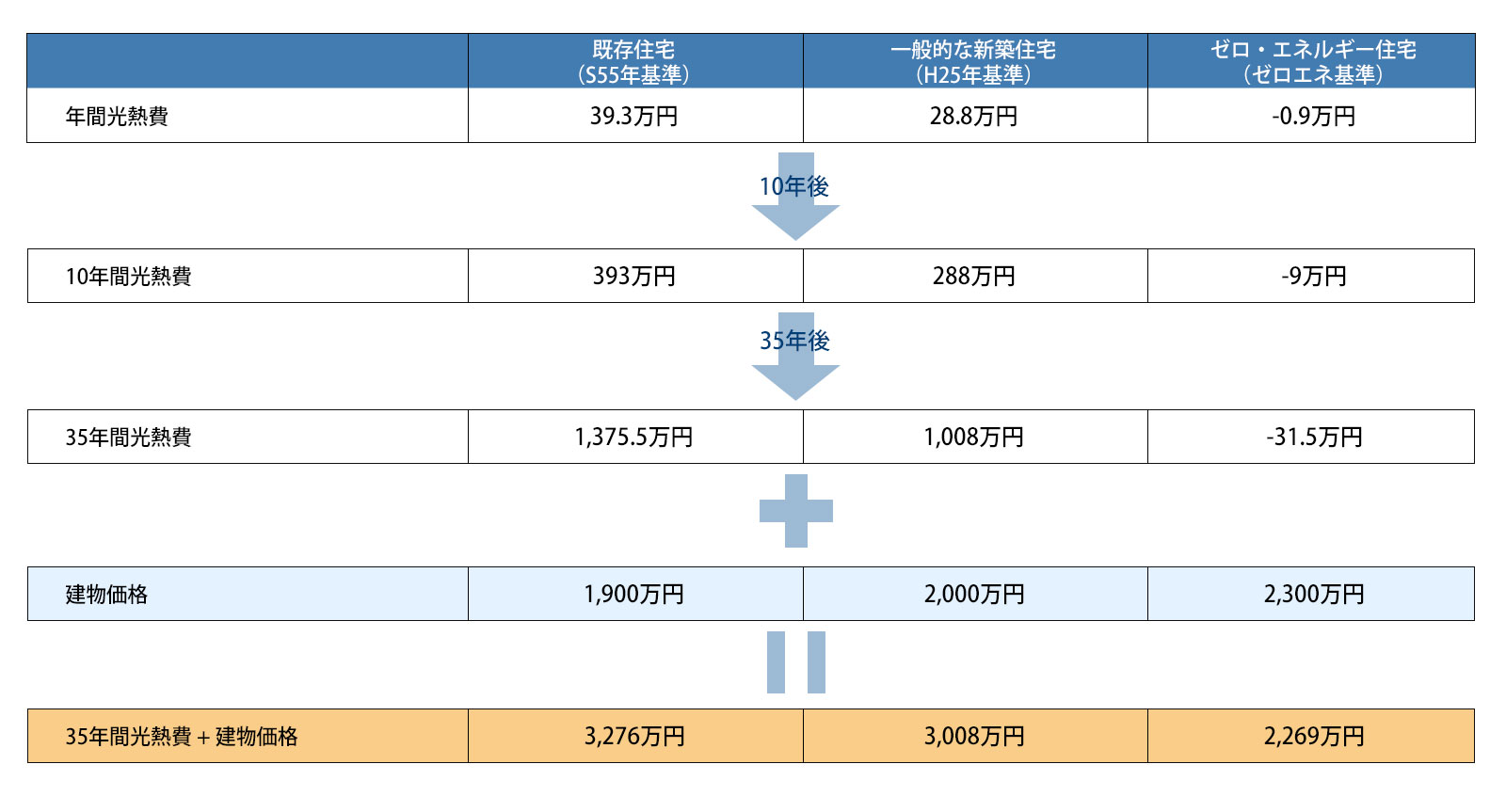 仮に家を建てるときに、太陽光発電や性能強化のためのコストが300万円かかったとしても、一生涯で家にかかるコスト「ライフサイクルコスト」を考えると大幅に支払い総額が少なくなります。