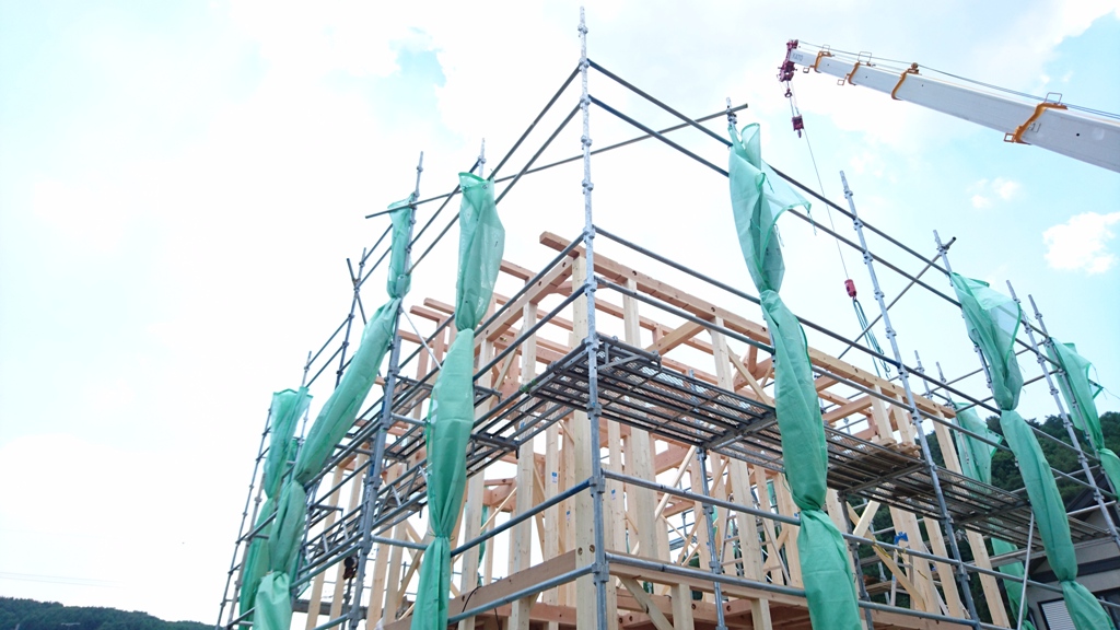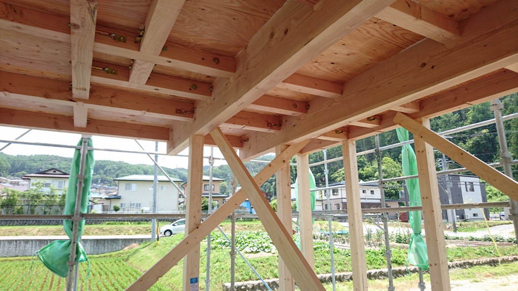 大工さんの手際の良さもあり1日で屋根までかけることができました。