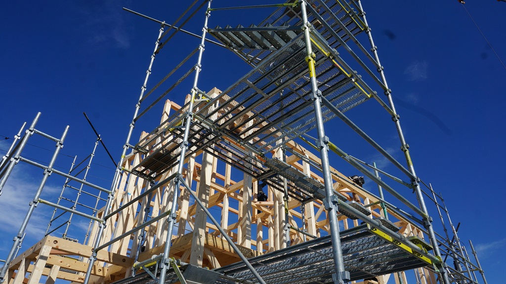 このところ雨の日も多かったのですが、上棟の際は晴れてくれました。